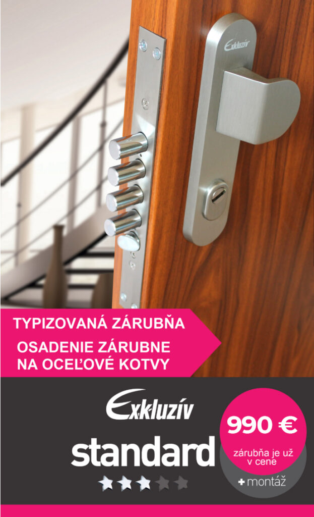 Vchodové dvere do bytu a domu Exkluzív Standard sú kompromisom medzi prijateľnou cenou, bezpečnosťou a príjemným vzhľadom.
